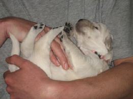 Bisher haben sich die Kleinen an die Mama gekuschelt oder miteinander, jetzt sind wir dran! Ganz wichtig für die Sozialisierung der Welpen ist die Gewöhnung an den Menschen. Das nutzen wir natürlich aus und kuscheln mit ihnen was das Zeug hält ;-)