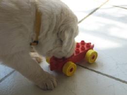 Sandy kann jetzt die Welpen schon richtig lange alleine lassen und genießt wieder ihre Spaziergänge, die Treffen mit ihren Freunden. Kein Wunder, denn Sie weiß ja, dass ihre Babies zu Hause gut aufgehoben sind und versorgt werden. Indessen krabbeln die Kleinen durch die Wurfbox, üben das Bellen und Knurren und kuscheln mit dem Spielzeug, das Sandy nach und nach in die Wurfbox geräumt hat.